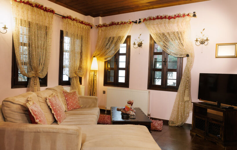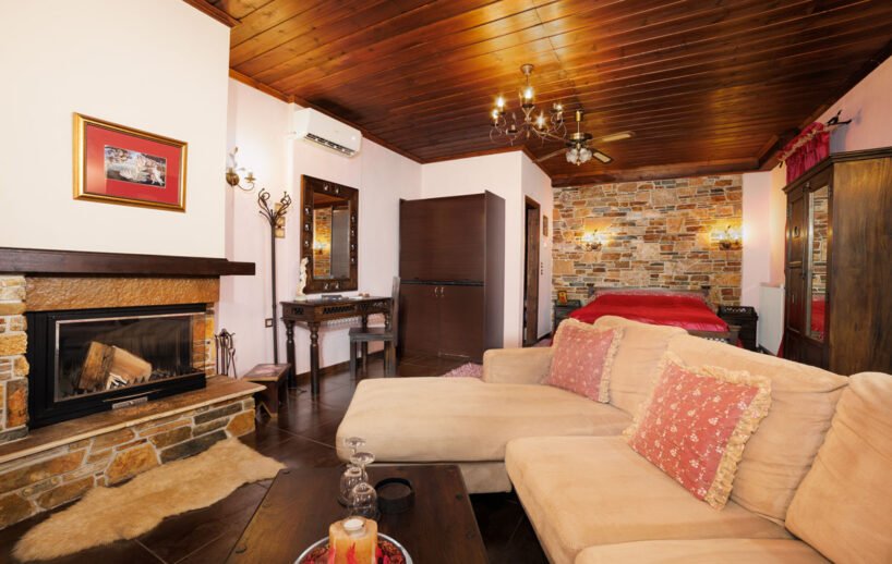 Η σουίτα “Αφροδίτη” των 40 τ.μ. συνδυάζει κομψότητα και άνεση σε έναν ενιαίο, φωτεινό χώρο. Διαθέτει ένα πολύ μεγάλο κρεβάτι για ξεκούραση και αναζωογόνηση, ενώ το σαλόνι με το τζάκι προσφέρει ζεστή ατμόσφαιρα για τις στιγμές χαλάρωσης. Ο ύπνος που σας προσφέρουμε είναι της coco -mat βραβευμένα παγκοσμίως για την ποιότητα τους.