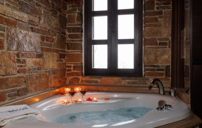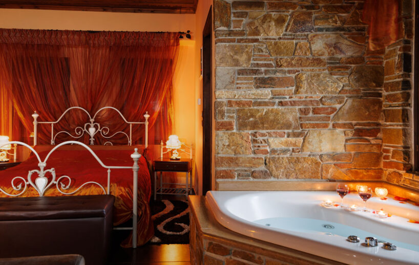 Η σουίτα “Δανάη” των 40 τ.μ. συνδυάζει πολυτέλεια και άνεση σε έναν ενιαίο, άνετο χώρο. Διαθέτει ένα πολύ μεγάλο κρεβάτι με είδη ύπνου Coco-Mat για αξεπέραστη ποιότητα ύπνου και χαλάρωσης. Το σαλόνι με το τζάκι προσφέρει μια ζεστή ατμόσφαιρα, ενώ το jacuzzi σας προσκαλεί να απολαύσετε στιγμές ευεξίας και ανανέωσης.